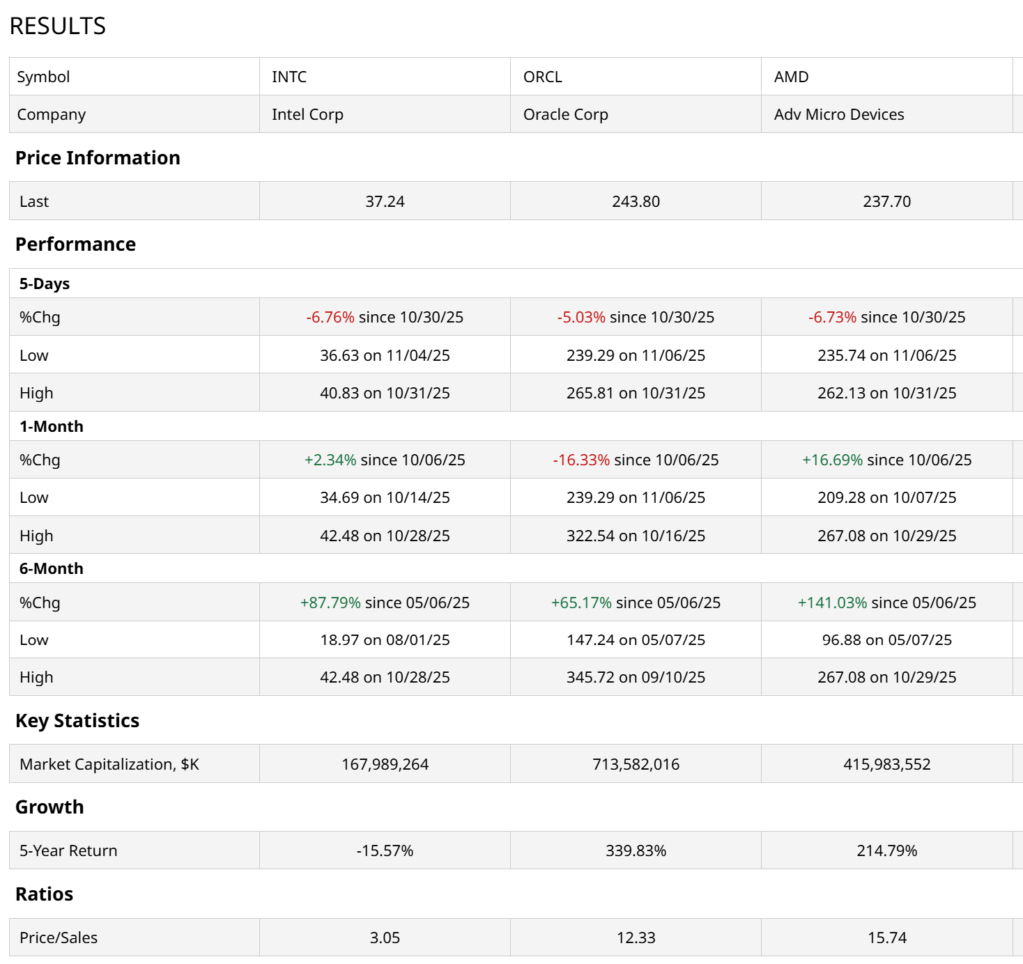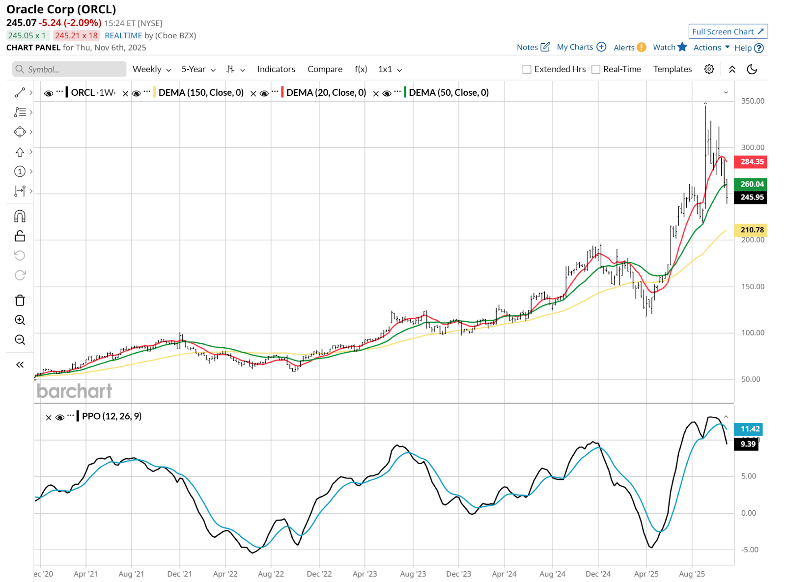 And Advanced Micro Devices (AMD) made a big deal with OpenAI, causing the market to make a big deal about AMD’s stock. It rallied more than 23% on Oct. 6. Then just 9 calendar days later, ORCL announced it would use 50,000 AMD chips by the end of next year, which took both stocks up solidly again. A similar arrangement between AMD and International Business Machines (IBM) added up to another big gain on a big deal.