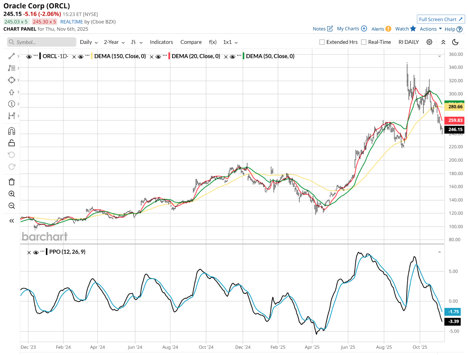 ORCL is, in my view, a classic case of “sell the news.” I’ve noticed that while the stock was a headline-grabber for a couple of weeks, it has slipped to the back pages. I guess I expected to see it front and center after a 30%, $100-per-share decline since late September.