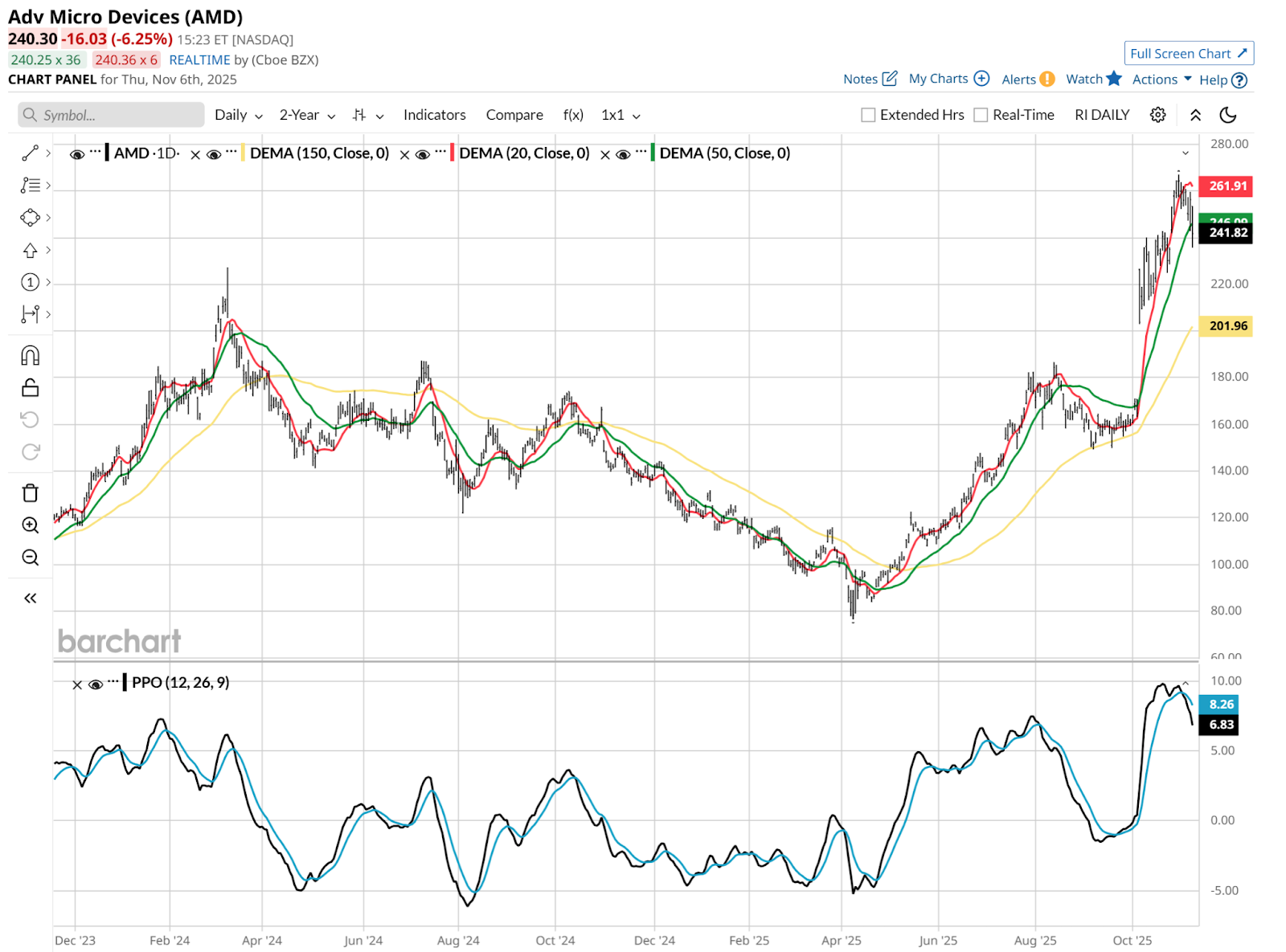 Finally, AMD is as vulnerable as any tech stock. Or other stock for that matter. It rallied on a lot of assumptions and announcements, and less about sustained profits and revenue from now forward. That doesn’t mean it won’t deliver, just that its expectations are extraordinarily high.