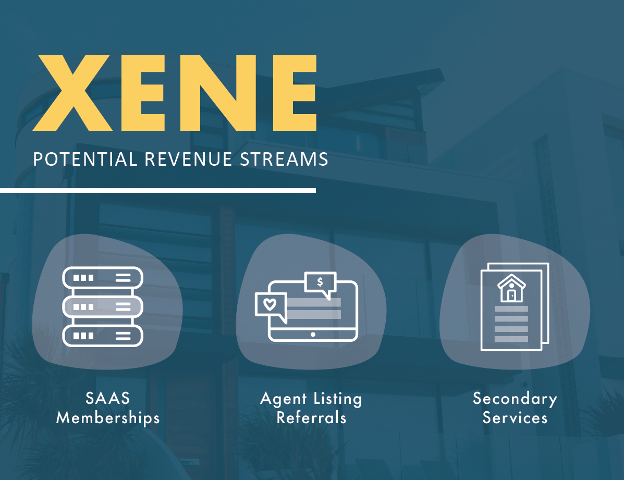 The third potential revenue stream for the platform is secondary services that form a part of all real estate transactions today. Examples of this include home warranty, home insurance, title and mortgage services. Xene home will look to offer these services as the platform continues to be developed.